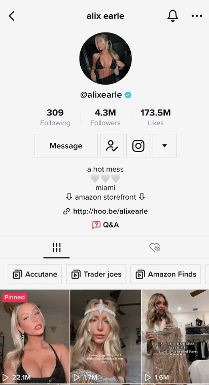 Alix Earle, a TikTok creator with more than seven million followers and thousands of videos, has six playlists on her page. One of those playlists showcases cooking videos, another shows her Amazon finds, and one more walks people through her journey with cystic acne.