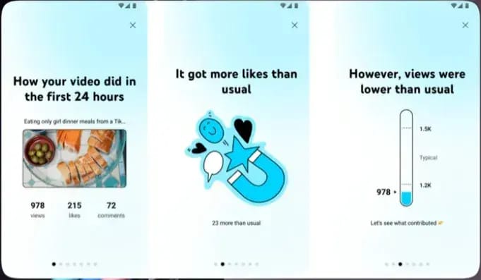 YouTube first launched Data Stories back in 2022, this update aims to build on that, by keeping creators updated on key aspects of their content efforts, especially in that all-important initial posting period.